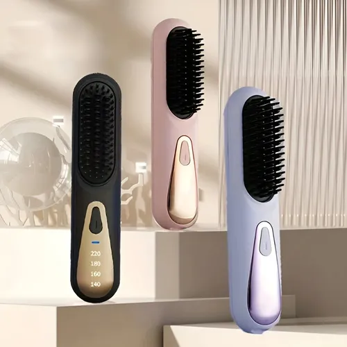 Equipado con cerdas de cerámica, este cepillo se desliza suavemente por el cabello, minimizando el daño y ofreciendo resultados profesionales. La pantalla LCD permite un control preciso de la temperatura, adaptándose a diferentes tipos de cabello para un alisado eficaz sin comprometer la salud capilar. Además, su diseño inalámbrico y función de carga USB lo convierten en un accesorio ideal para viajes, permitiéndote llevar contigo el estilo perfecto en todo momento.